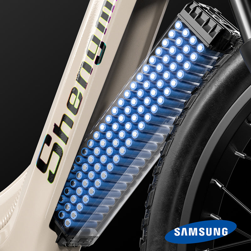 Equipped with a 48V 17.5Ah lithium-ion battery using high-performance Samsung cells, this 840Wh pack delivers enhanced range, stability, and safety. A single charge supports 40–50 km on throttle mode or over 90 km with pedal assist. Built to last, it endures 1,500+ charging cycles, maintaining at least 90% capacity after 8 months and 80% after 18 months.