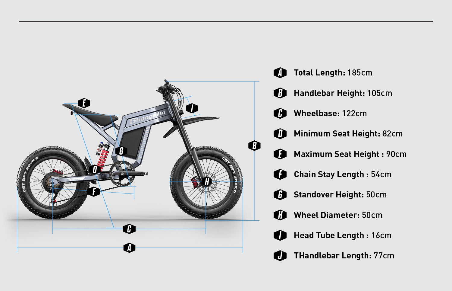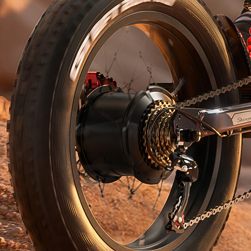 A key highlight of theShengmilo S900is its use ofpremium branded rear shock absorberscombined with ahigh-performance dual-crown front fork, offering outstanding suspension capability. As afull-suspension electric motorbike, the S900 delivers a comfortable riding experience with enhanced control across diverse terrains. It adapts effortlessly to a variety of riding scenarios, reducing impact, improving safety, and providing superior performance with the support of electric power.